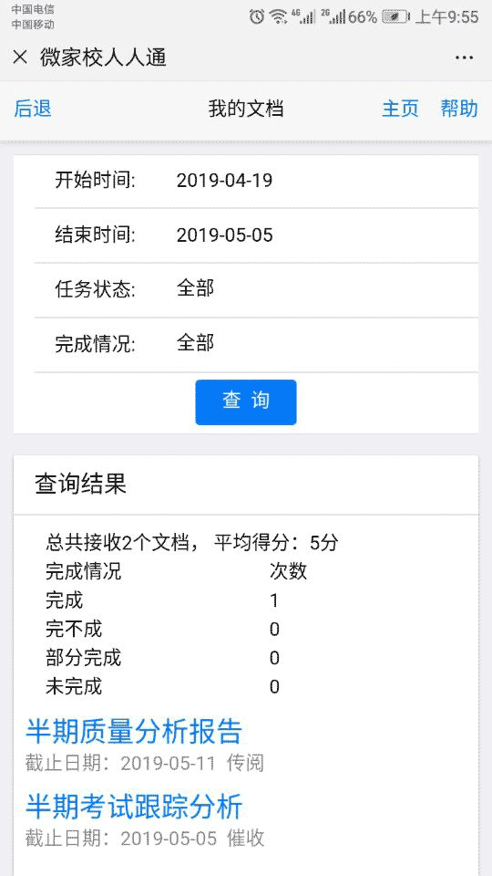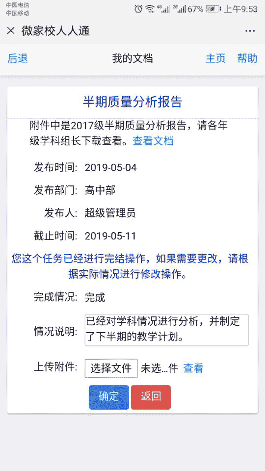 1、文档催收 要求上报资料文档时,先将整理好文档上报要求,选择必须上报的部门或教师后一键推送,相关教师马上就能收到文档上报任务。整个文档上报过程全程可控。