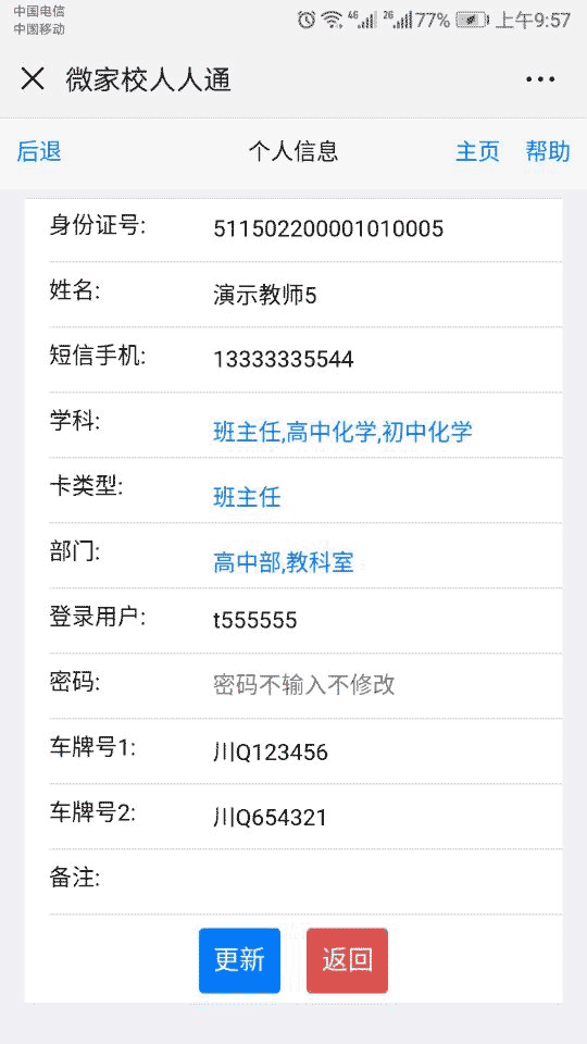 2、车牌录入 教师和学生家长通过手机平台录入车牌,系统自动将车牌信息发布到车辆识别系统,不用管理员一个一个手动录入。