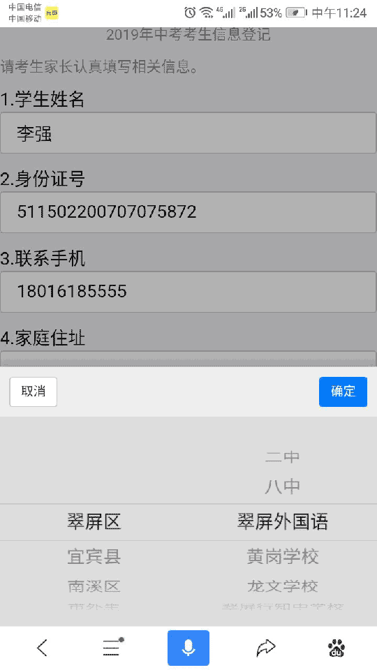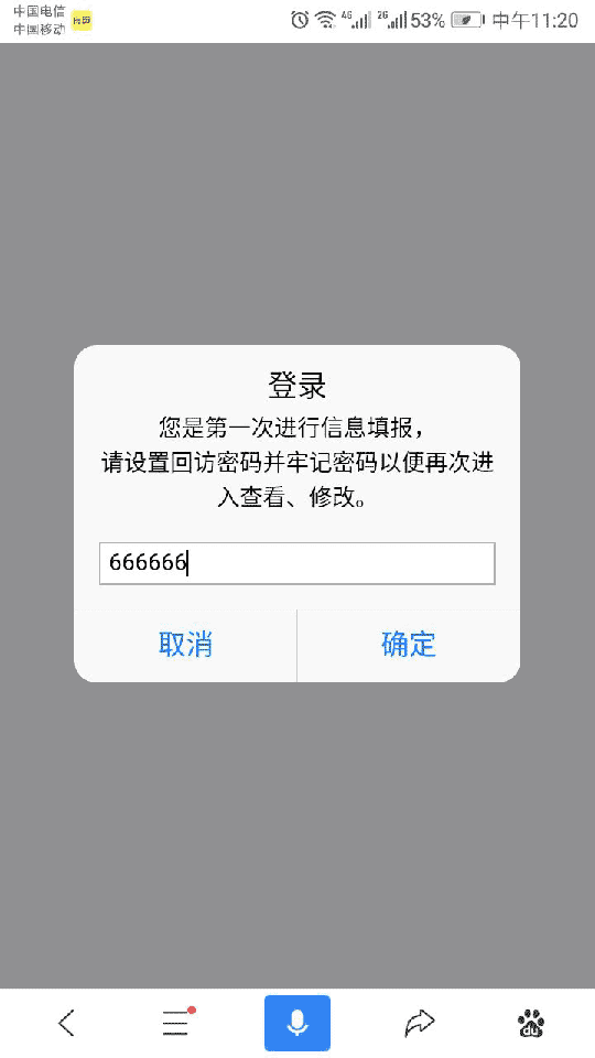 3、表单填写 各用户收到填写信息进行表单、问卷填写。对于实名、上报和回访表单,投票表单用户需要通过密码或自行设置密码进行访问。