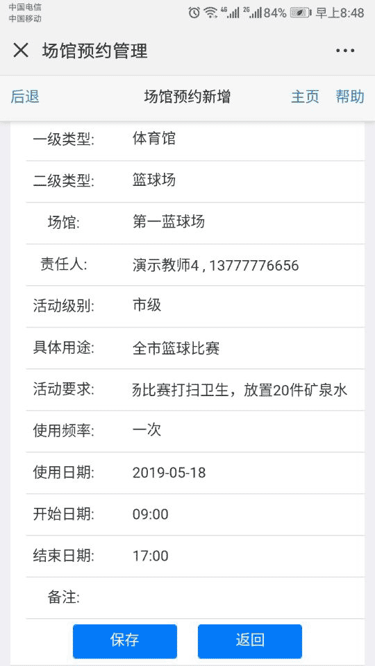 教师端预约信息登记